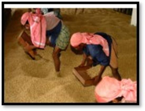 ■初めに生豆を4〜5日間しっかり乾燥させ、その後、数日間にわたり豆が水分を均一に吸い込むように用心深くかき混ぜます。